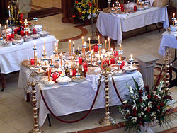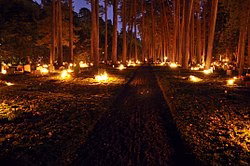All Souls Day is seen by many Christian leaders are one in which ecumenism is celebrated, given that believers from various denominations collectively visit Christian cemeteries that are interdenominational in nature.[12][11] Christians from the Catholic, Lutheran, Reformed, Anglican, Methodist and Baptist denominations often come together to clean, repair and then decorate graveyards together.[8][11] The use of candles by Christians symbolized the light of Christ and the use of lamps at the tombs of Christian martyrs dates back to the early Christian period.[19][20] Ecumenical prayer services are often held at Christian cemeteries on All Souls Day.[11]